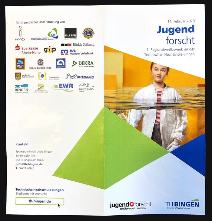 The 11th regional competition "Jugend forscht" (Youth research) will take place on February 14, 2020 at the TH Bingen and has the motto "Schaffst Du!" (You can do it!). The aim is to get young people excited about STEM subjects and to find and promote talent.